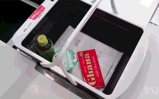 同样是在去年12月,日本松下集团联合日本线下连锁零售商店LAWSON推出了一套完全自动化的自助结账机,机器可自动帮助顾客完成装袋和计价步骤。其特色是发明一个特别功能的购物篮,顾客只要将物品放进篮内,里面的扫描器就会自动阅读物品上的电子标签。结账时,只要将篮子放在自动化柜台上,篮里的货品就会自动滑入塑胶袋,可为顾客节省装东西的时间。