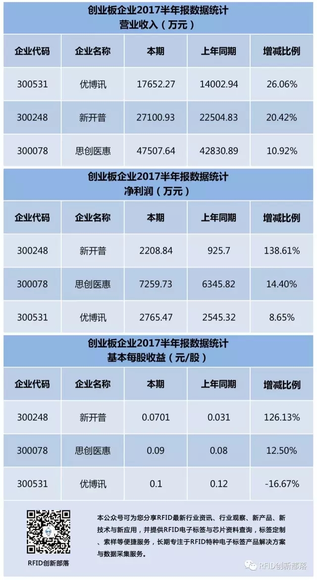 又到上市企业半年报的披露时间,这大半年大家到底过的怎么样?是喜还是忧?是否真的春天来了?为此,我们一起来看看2017上半年涉及RFID相关业务上市企业财务数据大盘点,重点还是以“主营业务收入、净利润、基本每股收益”三个方面来分析RFID行业发展的方向标。